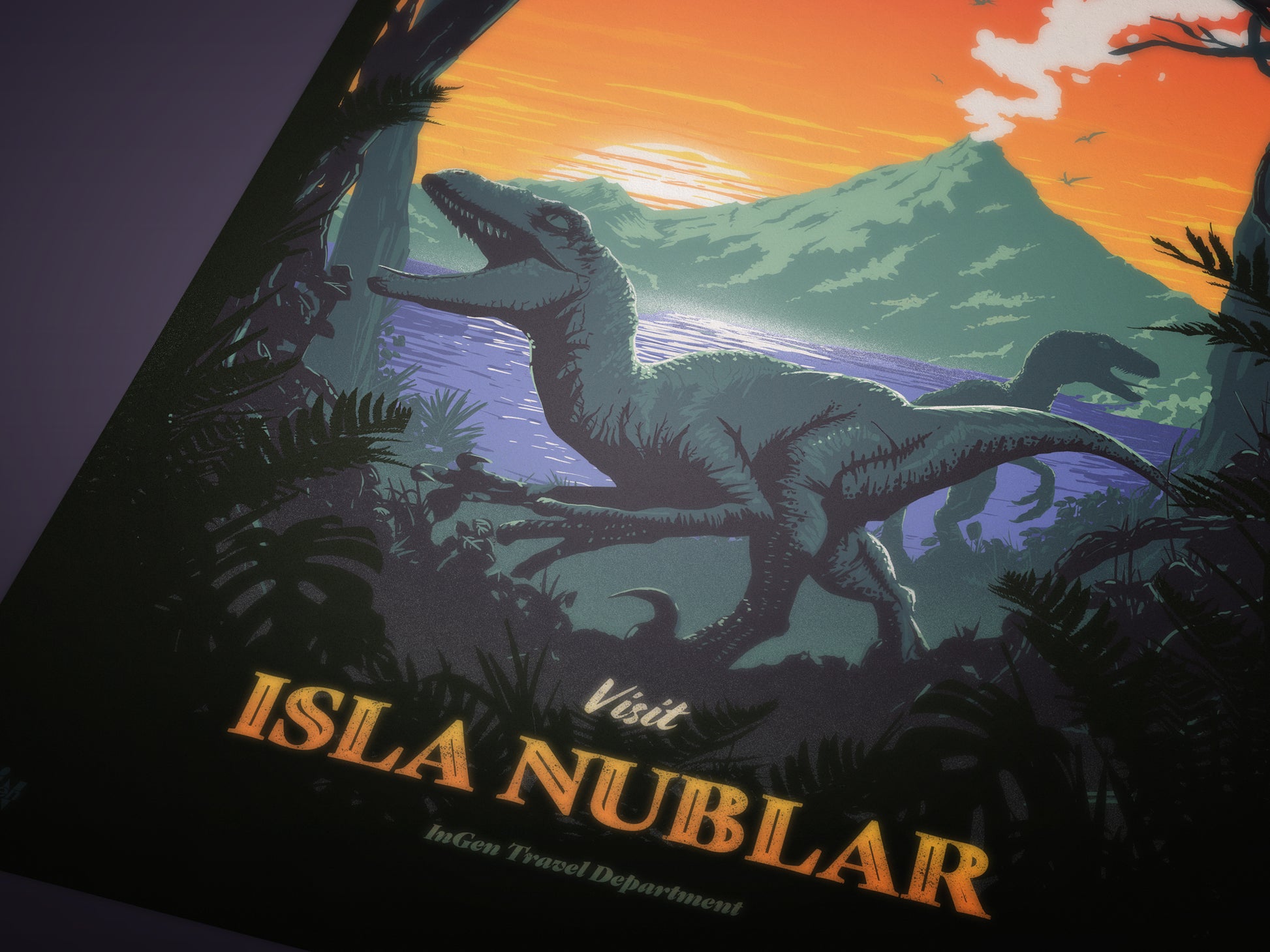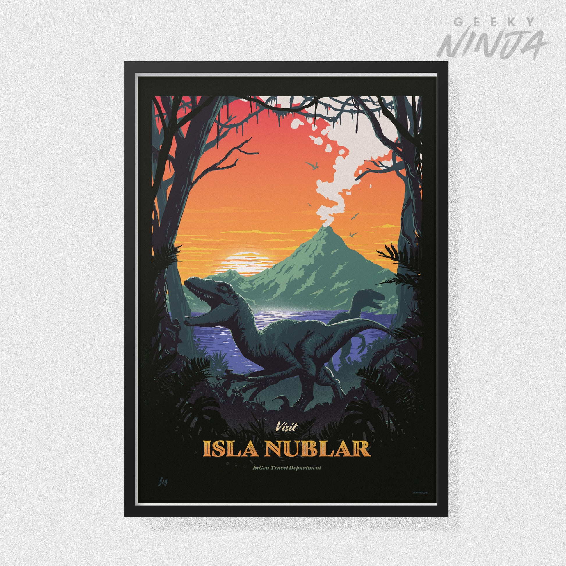 Isla Nublar Travel Poster - Vintage Travel Poster Art - Jurassic Park Poster Print - Retro Velociraptor Dinosaur Travel Poster - Fantasy Travel Poster - Jurassic Park Wall Art