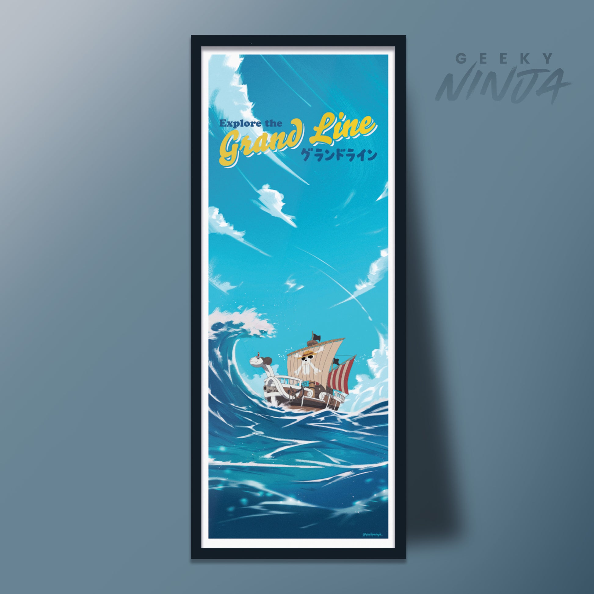 Explore the Grand Line and embark on a nostalgic journey with our vintage-style travel poster inspired by the iconic ship from One Piece, the Going Merry. Capturing the essence of adventure and camaraderie, this meticulously designed print is a must-have for any fan of the beloved One Piece anime series.